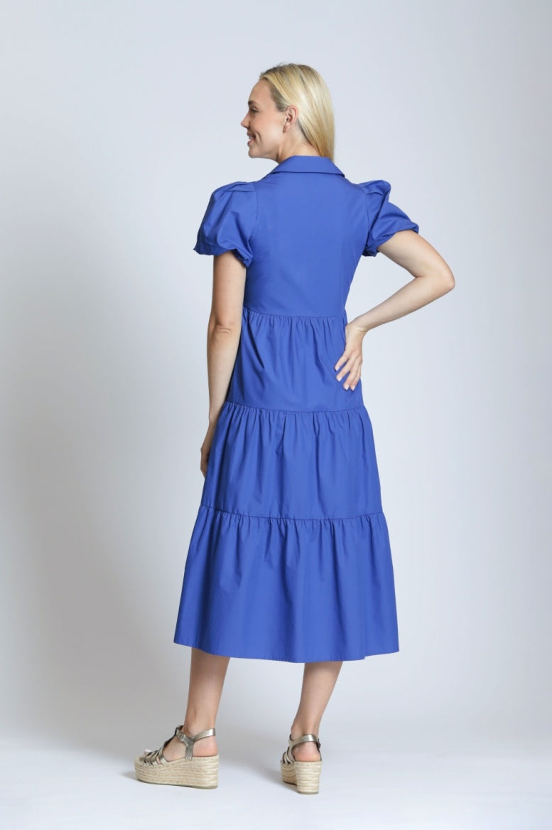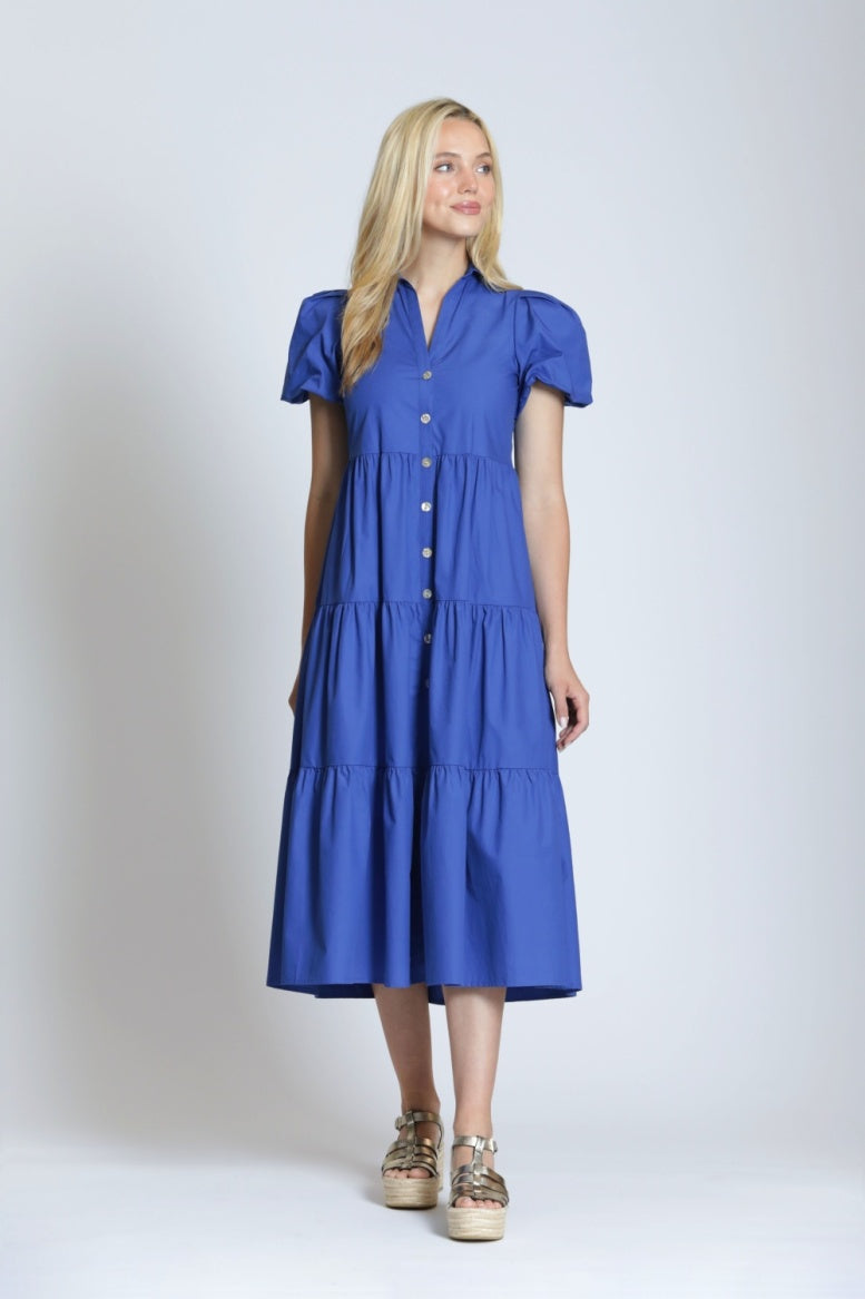 Long tiered dress with puff sleeve
