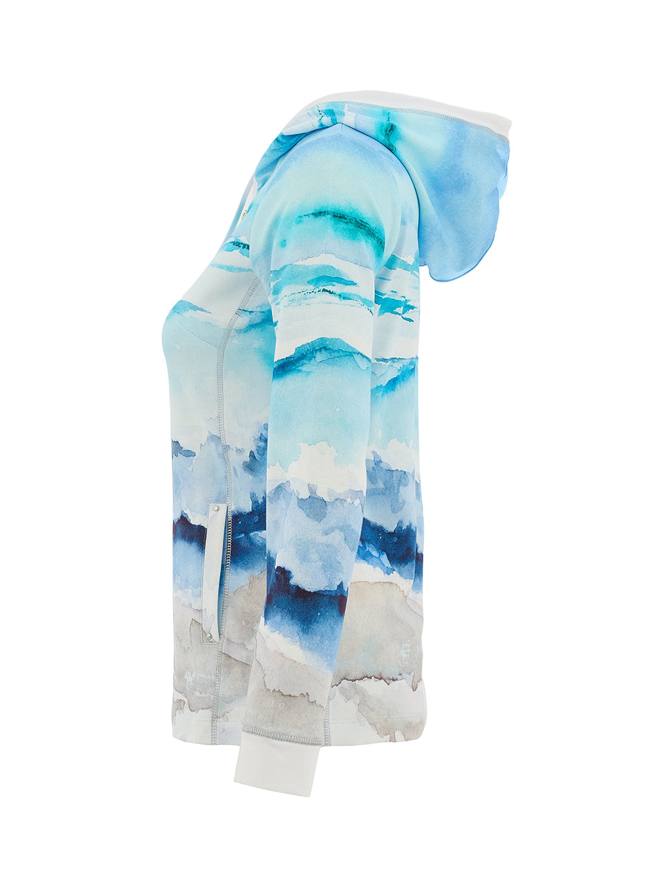 Dolcezza zip up jacket with hood. Ocean colors, stretchable and soft.